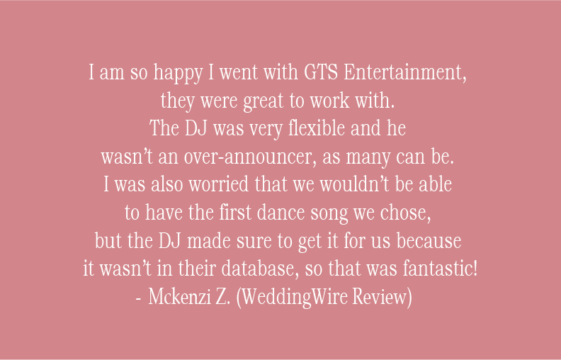 Stress-free wedding planning starts with GTS. We handle all your entertainment needs – from your rehearsal dinner, to your ceremony, all the way through to your send off at your reception – creating a seamless and unforgettable celebration with the perfect music for every moment. We offer DJs, live musicians, and more to match your unique style, and to create the perfect atmosphere for your special day, leaving you free to enjoy every moment.
